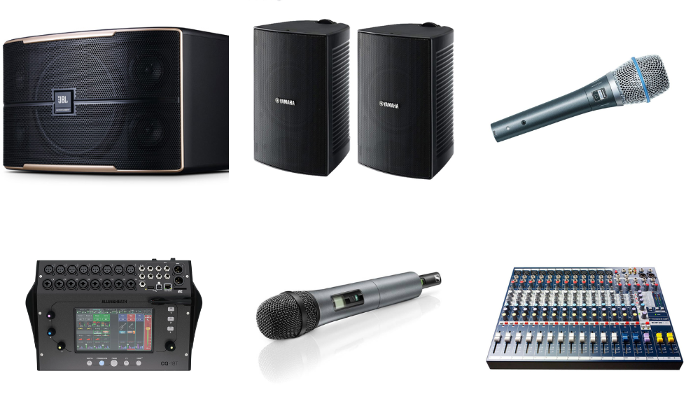 - Thiết bị chính: loa full hoặc loa cột, amply tầm trung, mixer đơn giản, micro có dây hoặc không dây cơ bản.