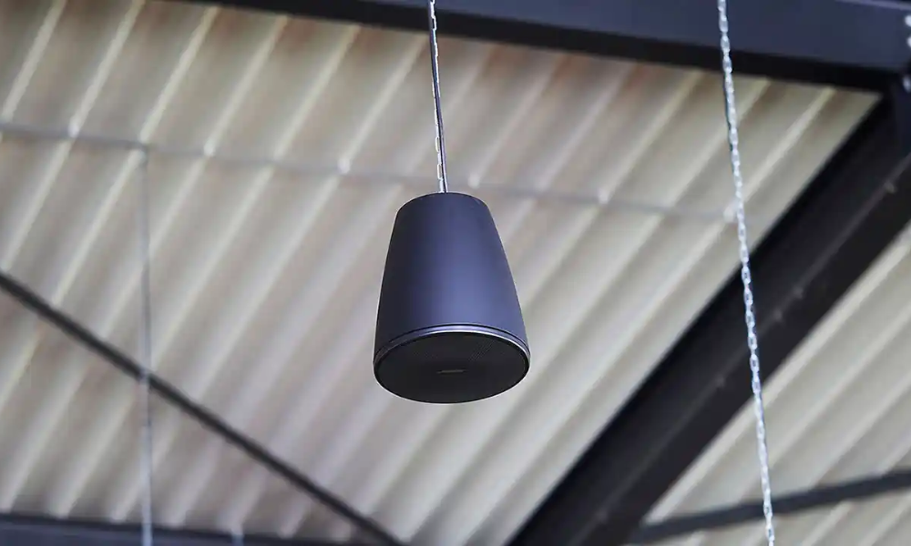 Loa treo trần giúp tiết kiệm diện tích, không chiếm không gian tường và cho khả năng phủ âm đều, không tạo điểm âm quá mạnh hoặc quá yếu. Loa thả trần (hoặc treo hạ xuống từ trần) thường được ứng dụng ở các công trình có trần cao hoặc trần lửng, giúp âm thanh hướng xuống đều hơn, hạn chế phản xạ và mang lại trải nghiệm nghe dễ chịu, cân bằng.
