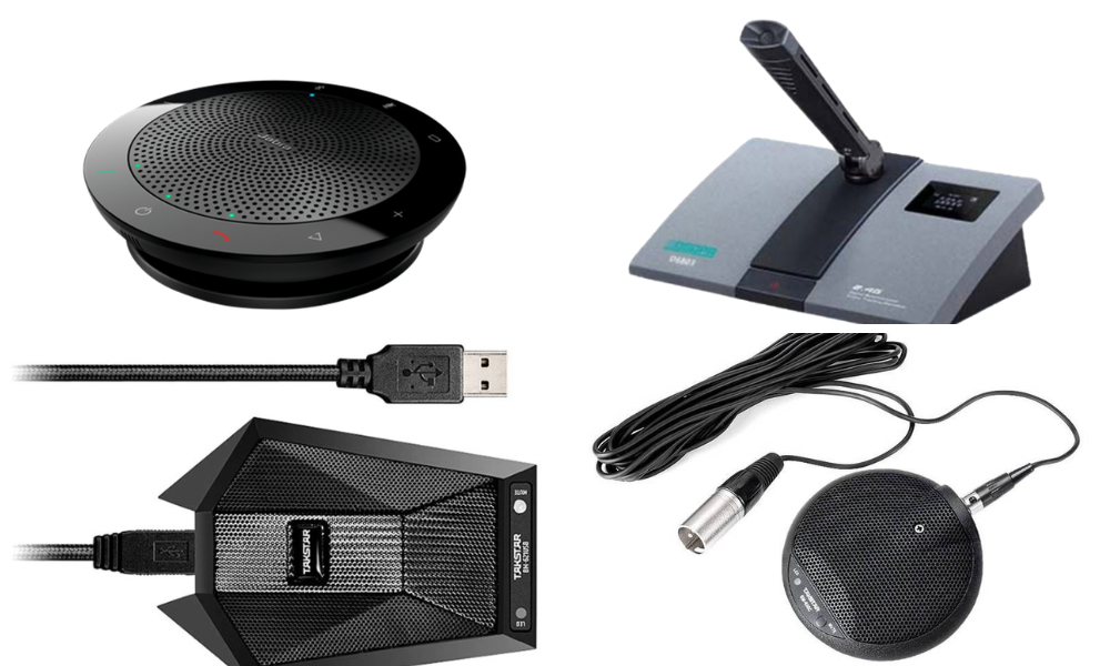 Micro được sử dụng cho hội nghị, phát biểu hoặc họp trực tuyến. Có nhiều loại như micro để bàn, micro cổ ngỗng, micro không dây hoặc micro cầm tay. Ưu tiên loại có tính năng lọc tạp âm, giảm hú và thu tiếng rõ ràng.