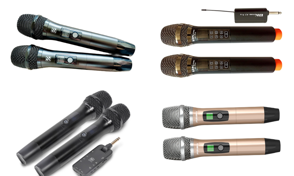 - Micro đôi: Hai micro hoạt động song song, dùng cho hội nghị, song ca hoặc biểu diễn cặp đôi.